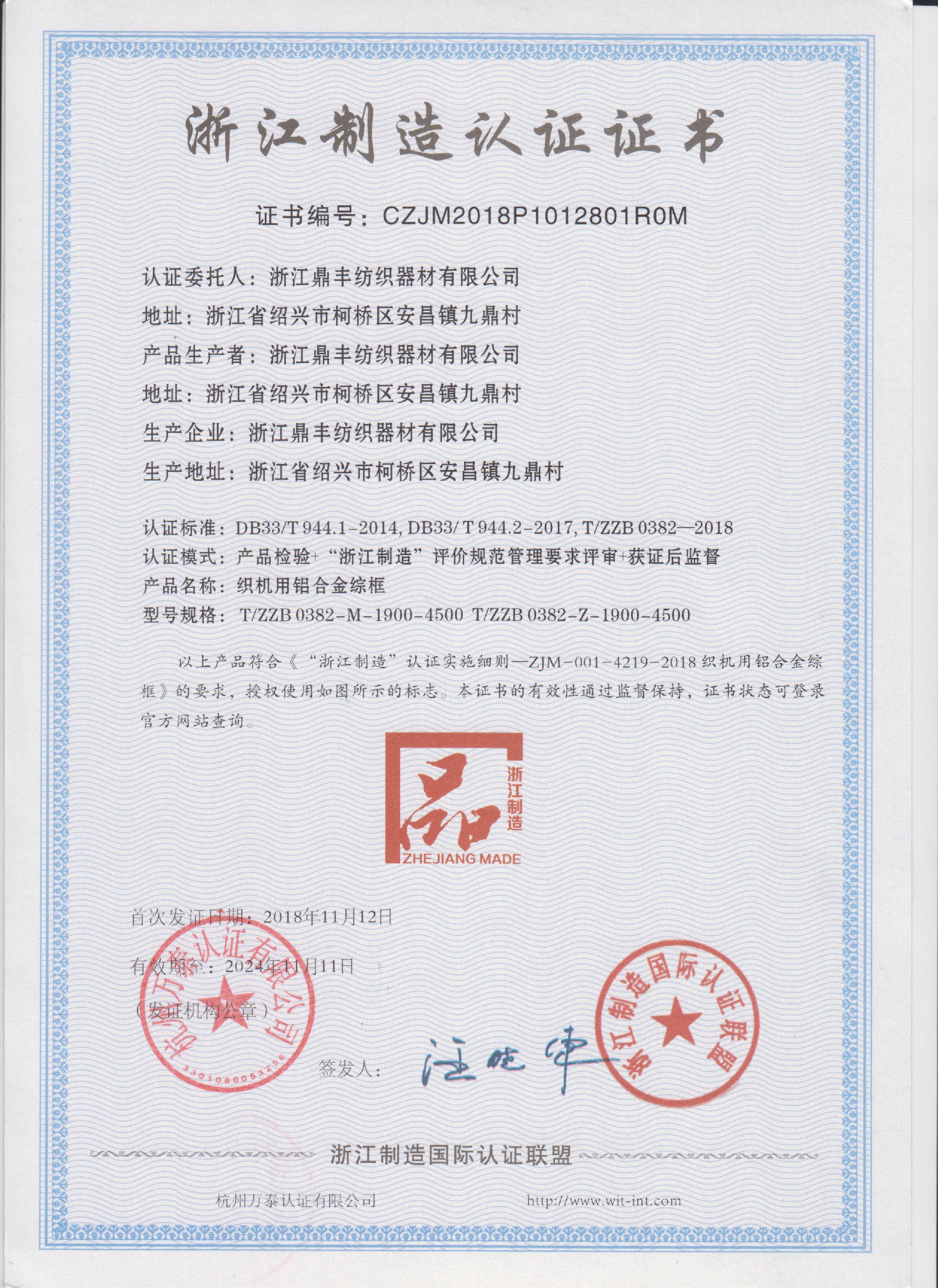 1、貴公司是一家專業生產各類無梭織機鋁合金鋼筘、綜框、鋼片綜、停經片、經軸、織軸和卷布輥等產品及配件的民營企業。公司成立30多年迅速發(fā)展、占領市場的秘決是什么?余定雅:是高品質的產品,完善的售后服務和大規(guī)模的生產能力保證了浙江鼎豐紡織器材有限公司的產品銷售量在國內獨占鰲頭。為了與全球市場經濟接軌,鼎豐紡